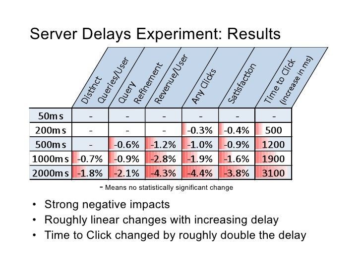 No solo Google sufre con la lentitud, la impaciencia de los visitantes hace que cuanto mas tarda una página, mas fácil sea que la abandonemos de hecho, hay un estudio que hizo Eric Churman acerca de los tiempos de página y como nos afecta como usuarios, cuyo resumen es este: